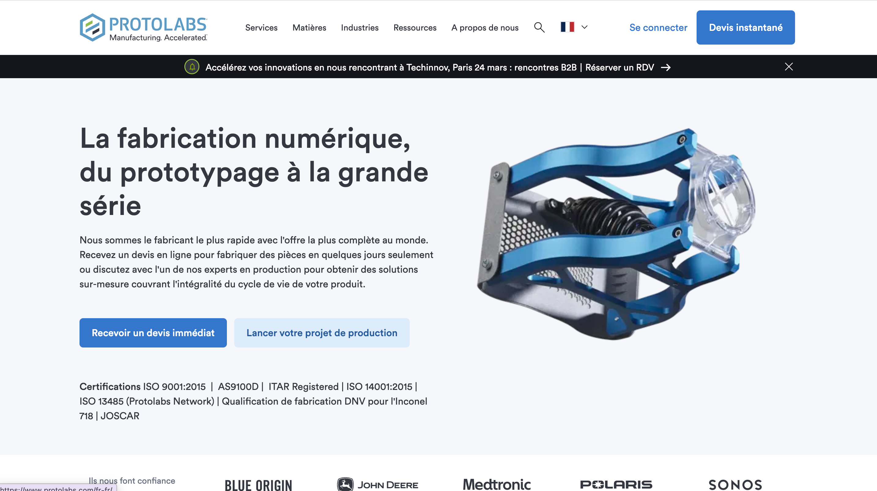 - La valeur ajoutée : Protolabs supprime totalement les frictions du cycle de vente classique (appels, e-mails multiples, attente de chiffrage). En parallèle, le site regorge de guides de conception gratuits pour attirer les concepteurs et générer toujours plus de trafic sur son site web dans l'industrie.