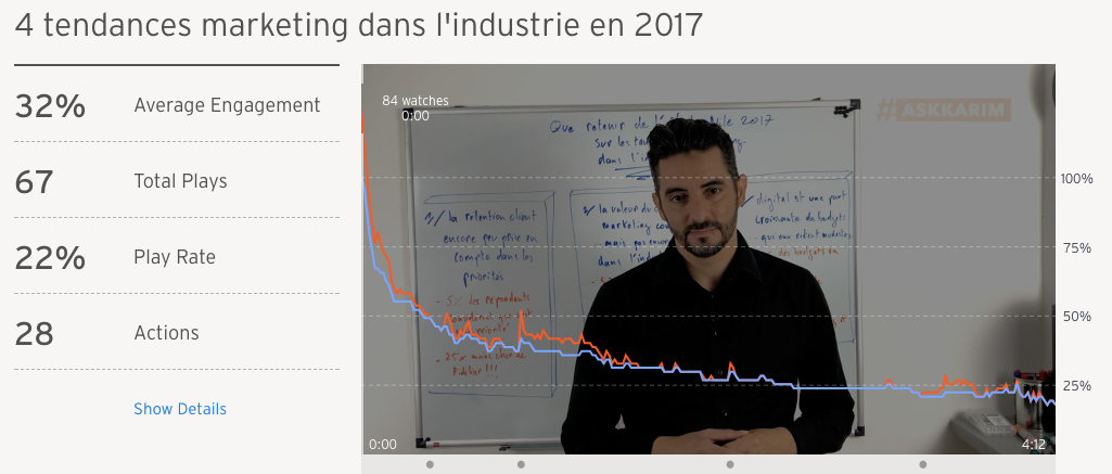 Depuis que LinkedIn a rajouté la fonction vidéo à sa plateforme, nous mesurons d’excellents résultats. Sur ces 4 dernières semaines, les vidéos publiées par Karim sur son profil LinkedIn ont comptabilisé 11 022 vues. Ceci est la force des réseaux sociaux et notamment de LinkedIn, c’est de pouvoir travailler l'employee advocacy et son personal branding et pour cela, la vidéo est un outil performant. Se filmer pour raconter son expérience, son expertise sur un domaine en particulier est devenu aujourd’hui la clef de votre succès sur LinkedIn en tant que chef d’entreprise.
