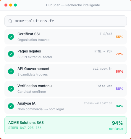 🛠️ Conseil d'expert : automatisez avec HubScan pour ne plus perdre une minute sur la saisie tout en garantissant des données (SIRET, statuts, données financières...) 100% à jour dans votre CRM, notre outil HubScan se connecte directement à votre environnement. Fini le travail de fourmi, vos commerciaux se concentrent sur la vente.