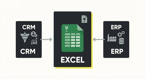 C'est le symptôme universel. On extrait les données de l'ERP vers Excel, on y intègre les règles métier (formules), et on génère le PDF. Les outils à plusieurs centaines de milliers d'euros (ERP+CRM) deviennent de simples bases de données passives, tandis que l'intelligence commerciale de l'entreprise réside dans un fichier fragile.